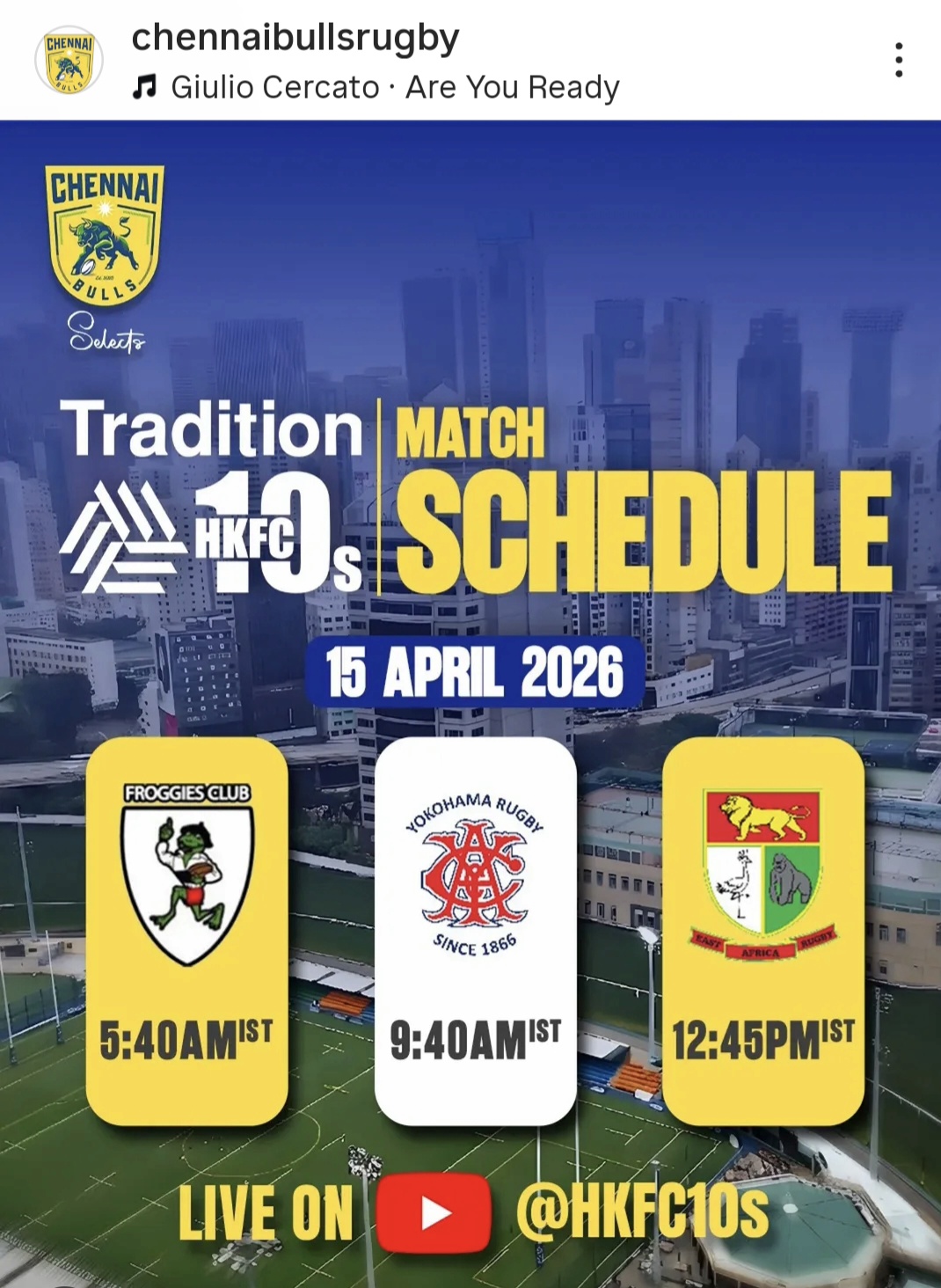 The Chennai Bulls, reigning Rugby Premier League Champions, are in Hong Kong and the tournament is underway. The Bulls have taken the field at the prestigious Tradition HKFC 10s — a 40th anniversary edition of one of rugby’s most respected invitationals, hosted at the iconic Hong Kong Football Club.